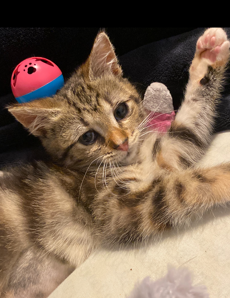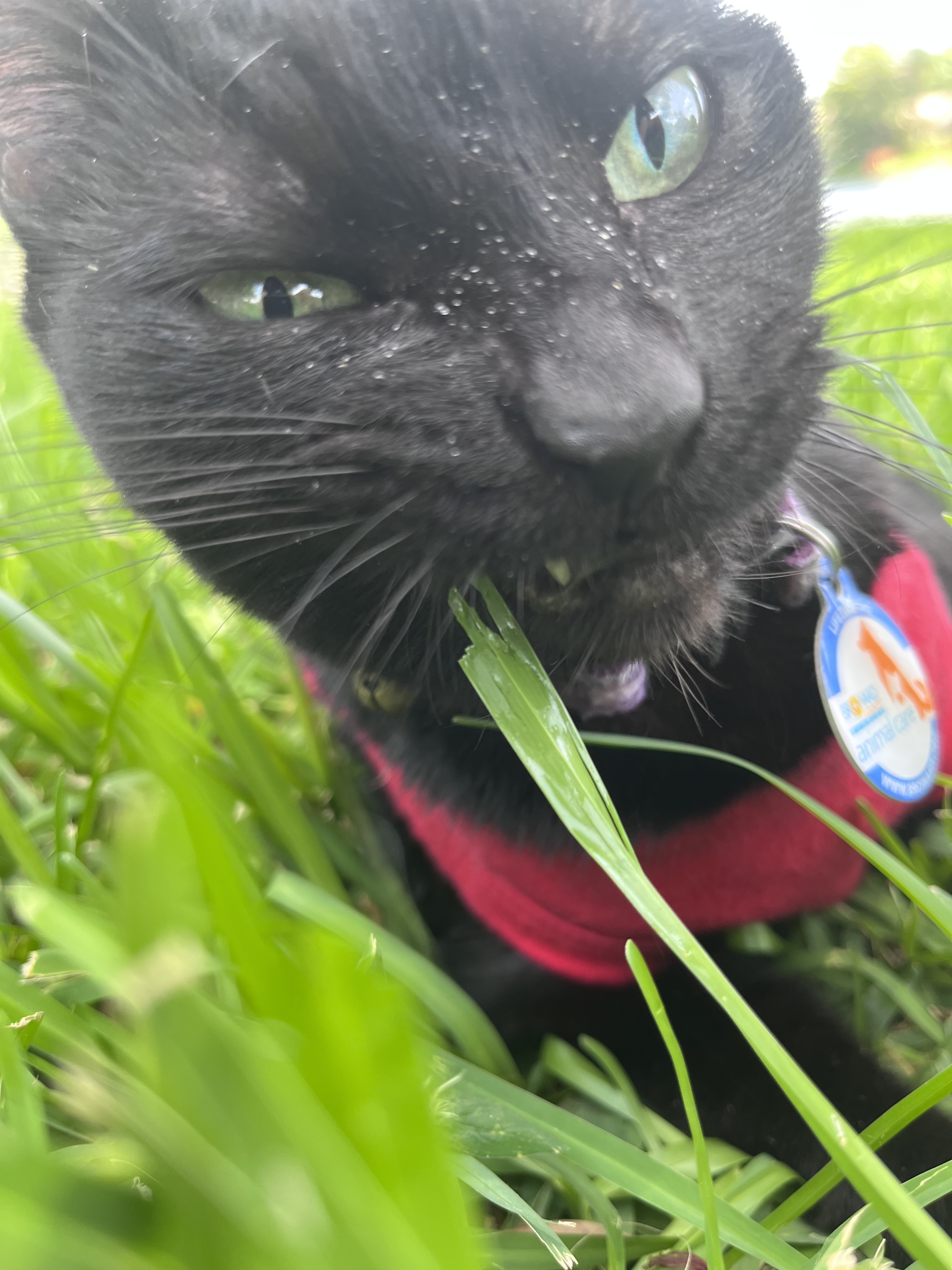 Medication & Behavior: very shy of most people. Really likes to go outside and bite grass, loves “hunting” even though she is fighting a gecco. Does not like other animals, especially other cats, can get violent at times, please be patient.