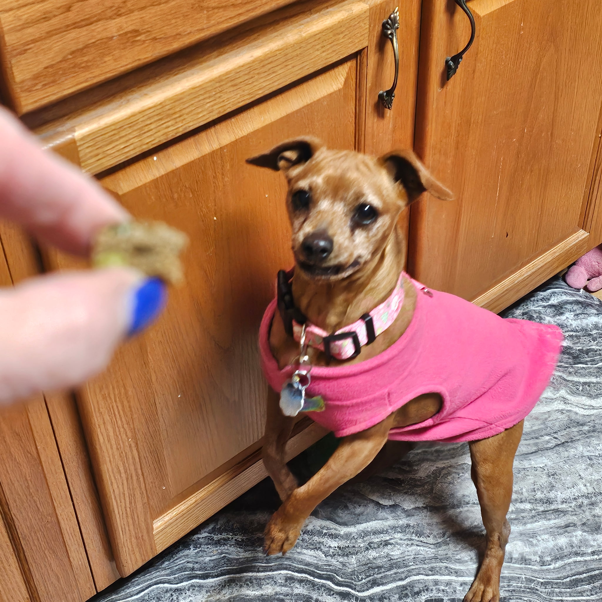 Medication & Behavior: A good dog doesn’t really bite but barks shows love if your nice, kind to her loves treats